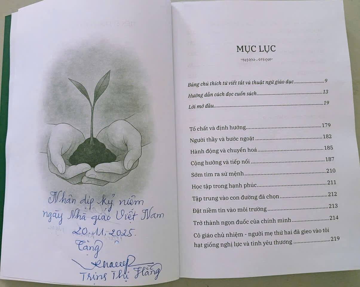 Thay mặt tập thể cán bộ, giáo viên Trường Tiểu học Nguyễn Hữu Tiến, tôi xin trân trọng gửi lời cảm ơn sâu sắc tới đồng chí Trịnh Thị Hằng – Bí thư Đảng ủy, Chủ tịch Hội đồng nhân dân phường Đồng Văn đã dành tặng cho nhà trường cuốn sách “Sứ mệnh người thầy” của Tiến sĩ Trần Khánh Ngọc.